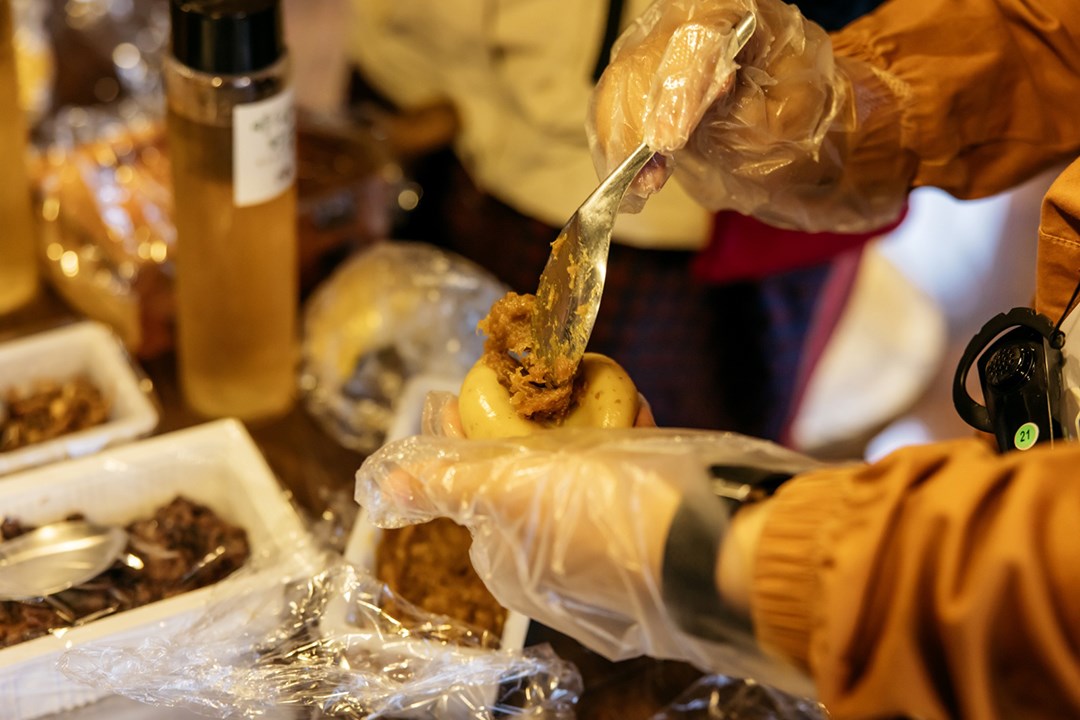 最後到隆源餅行體驗手作柑橘味紅粄,將鹹甜內餡包入粄糰中,再以粄模壓製成形,仍不失客家傳統風味。本場走讀在新與舊、古與今之間交織,歷史、文化、文學、地景彼此牽動,北埔的故事永遠都是未完待續,令人期待。