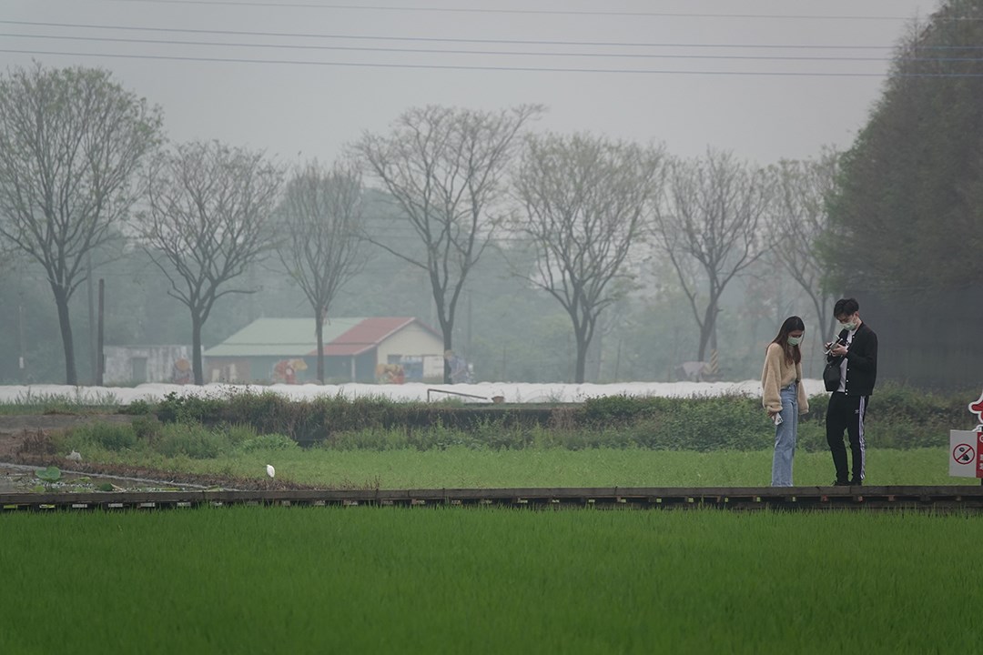 在南部縣市的一場造勢場合,我從高點俯瞰晚上即將舉辦的選舉造勢晚會,選舉人的旗幟、紅色塑膠椅凳,整齊擺放排列,猶如苦心孤詣的一畝田……