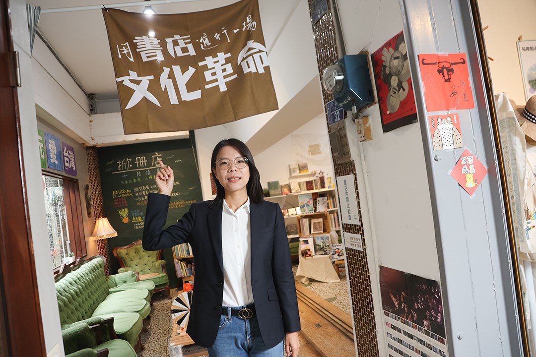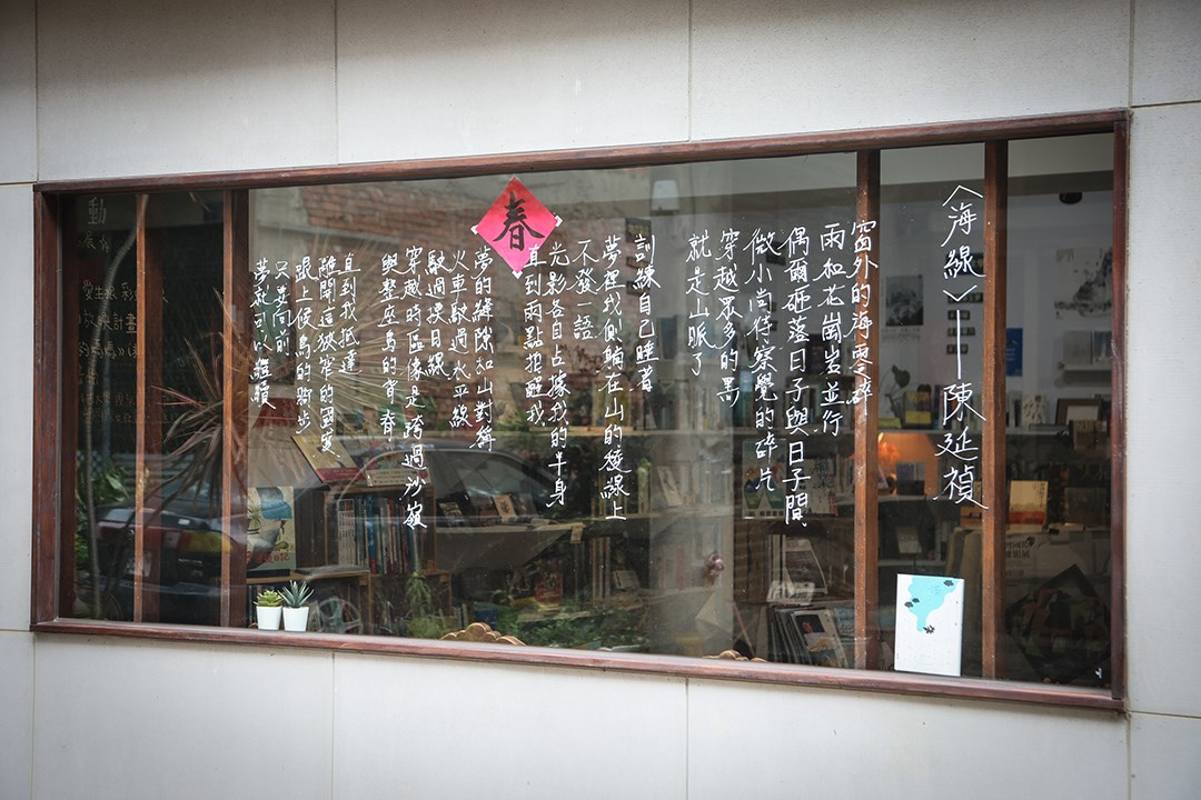 一張張獎狀黏在牆面上,濕氣讓它們有些泛黃,有些邊緣起了角,這些獎狀像壁紙負責妝點空白,就算花紋款式稍有變化,仍有其反覆節奏。而不難發現,苗栗苑裡獨立書店「掀冊店」這面獎狀牆,最規律而反覆出現的字樣之一就是「劉育育」。