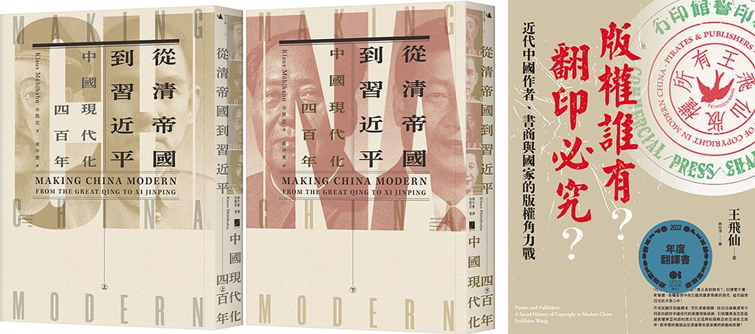 《從清帝國到習近平》與《版權誰有?翻印必究?》則分別以現代中國的形成,以及「版權」概念的產生這個新角度,帶領讀者探索近代中國制度改變的影響與文化政策形成的脈絡,兩者皆具可讀性。