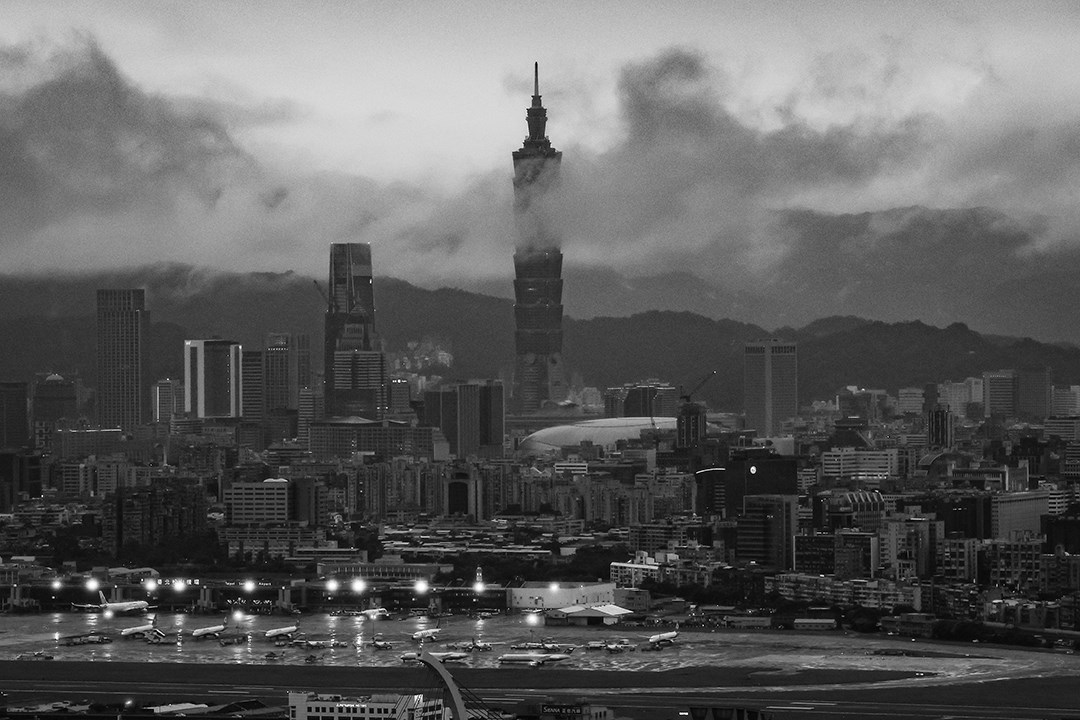 這天突發奇想登山看一下台北市區,拍個天氣圖文,背著相機上山, 心裡暗自埋怨著這個鬼天氣要到何年何月才會停止。到了山上觀景台已經接近傍晚,全身濕透、再喘口氣,坐在涼亭等待白霧散去。