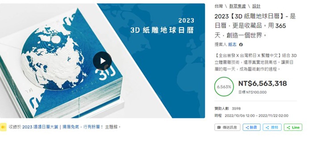 林大涵表示,去年破千萬集資的紙本日曆其實較多,例如《讀曆書店2022》、《2022〔虎虎生風〕貓日曆》都有破千萬,但今年兩者都募資到600多萬左右,「因為一直有新的團隊正在投入這個市場。」