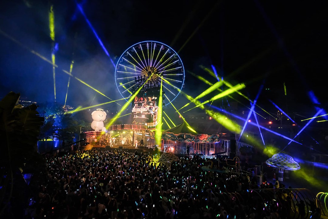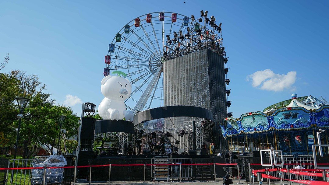 在得知告五人選擇在遊樂園場域,主舞台搭建在摩天輪前,並納入一旁的旋轉木馬作為延伸舞台後,郭曉汝決定規劃出一個20公尺高的L型直角LED螢幕,佇立在兩個遊樂設施間,隨著音樂時而是3D組裝城堡、時而是爆米花機或大型玩具,彷彿真的在現實世界創造出魔幻舞台。
