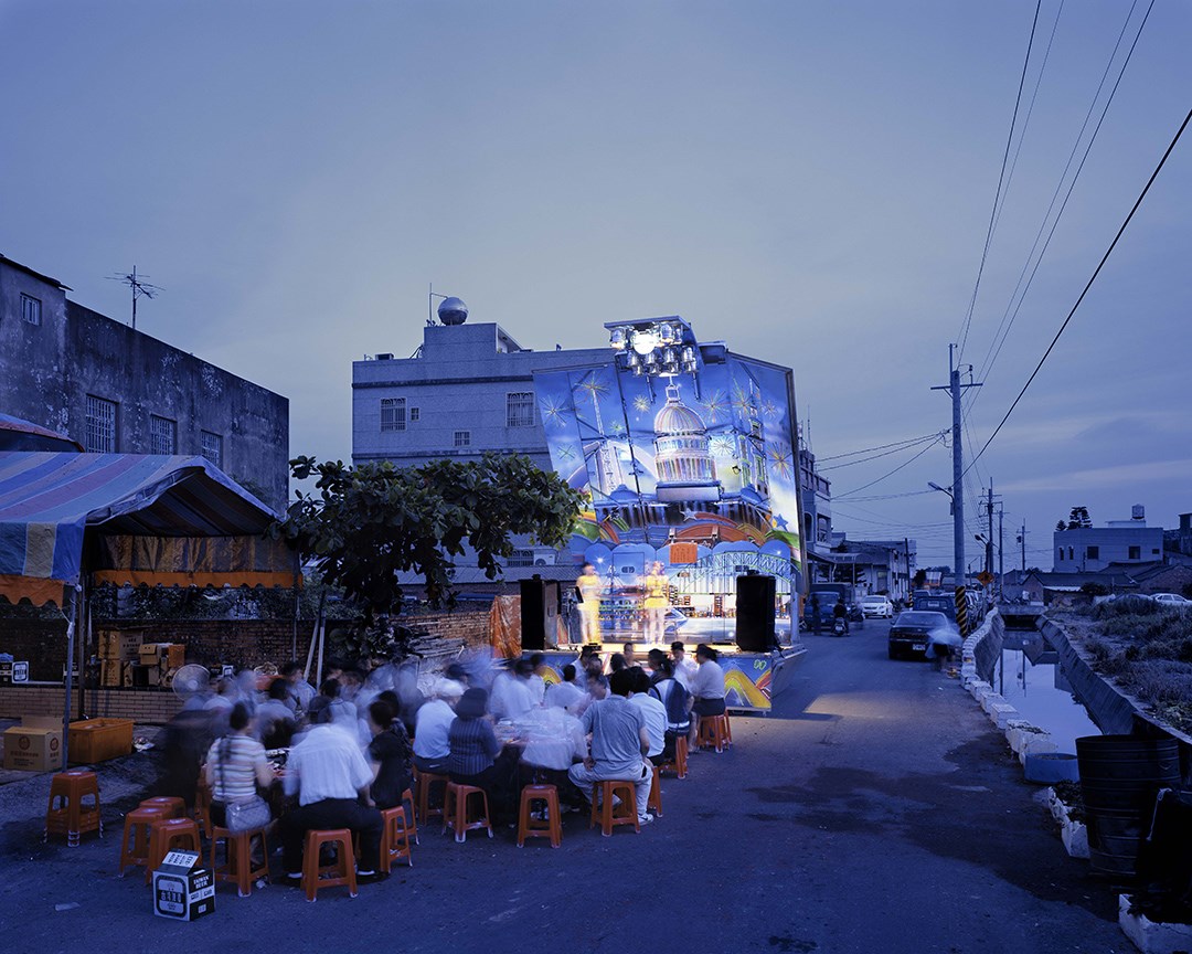 這些無人的文化肖像,在被稱為「魔幻時刻」日落天黑前的十幾分鐘間被長曝擷取,吸飽台灣土地上的庶民社會能量,舞台車也被重新賦予新生命與看待角度,「在我心裡,舞台車的製作者都是藝術家」,沈昭良指出,日本藝術家柳美和還特地來台訂製舞台劇巡演專用的舞台車,內裡LED塗裝則設計成日本山岳信仰圖樣。