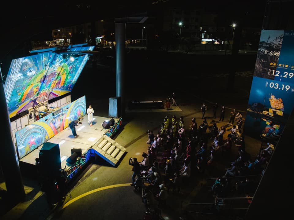 當記者時間雖不長,幾年來確實跑了不少記者會現場,從飯店某某廳、音樂展演空間、文創園區廣場到電視台大樓等,但辦在「舞台車」上的倒是第一次,感覺既懷念又新鮮。尤其當夕陽褪去,夜幕降臨時,停駐在宜蘭羅東文化工場的舞台車,亮起五光十色的霓虹LED,充滿草根的生猛活力。