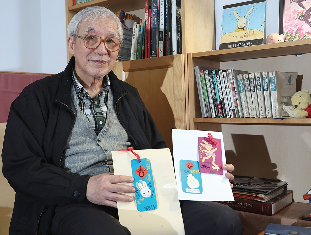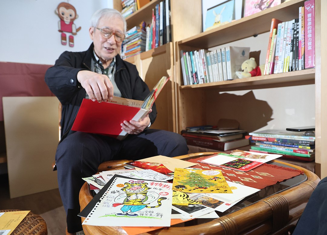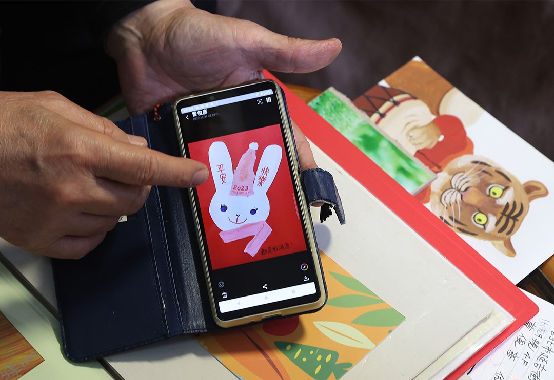現年83歲的他,操作起智慧型手機游刃有餘,點開聊天室對話框,一來一往,有寒暄,有關心,還有一張張圖片,那是他拍下他手作的賀年卡,在雲端送祝福,「我每年會寄卡片,也會LINE給別人,兩個都有!但那感覺不太一樣,拿到手上還是比較感動吧?」