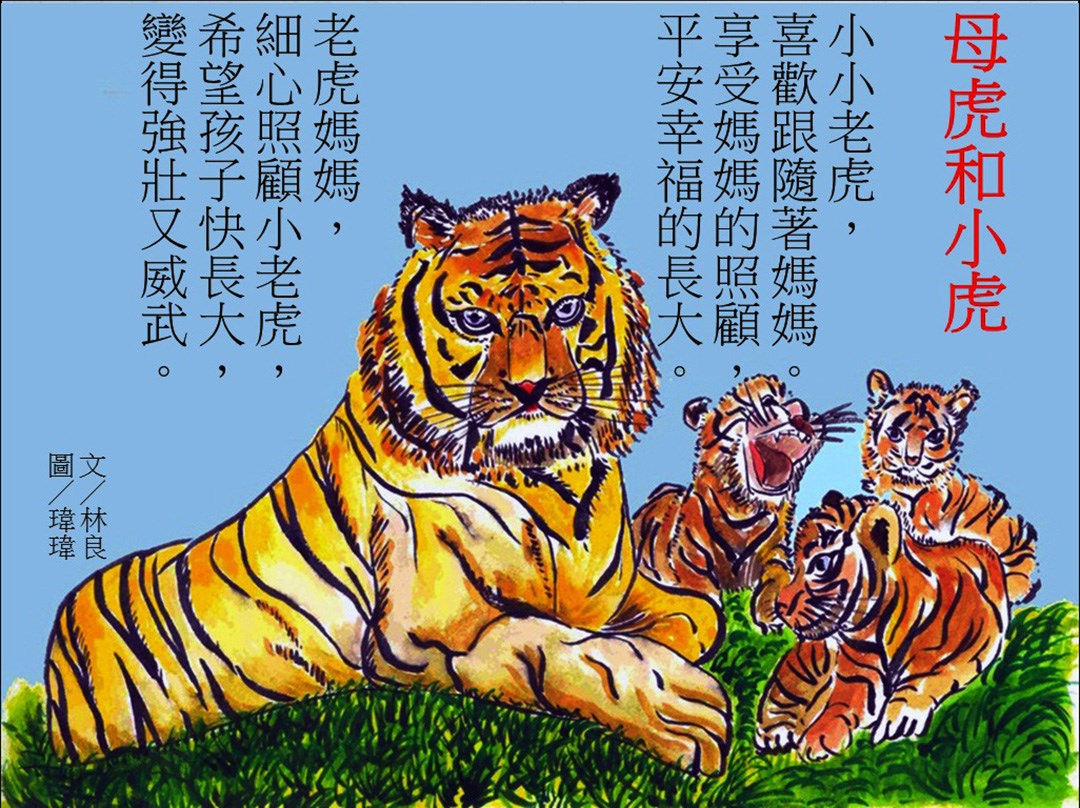 「那時洪義男老師(已故插畫家) 在中山醫院住院中,我就把我畫的老虎送給他,祝他早日康復,結果和我一起前去探病的《國語日報》語文版主版看到,就說『妳畫得這麼好,應該拿來給『看圖說話』登,那是《國語日報》一個長期的專欄,由插畫家們配上圖跟文字,可是我的卡片已經送給洪義男老師,怎麼可以跟他要回來呢?」