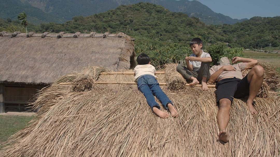 在《叫我野孩子2》其中一集尾聲,陽光灑落在趴臥茅草屋頂上男孩們與他們的教練豪毅,一大兩小享受這5天協力完成的涼台成果閒聊。