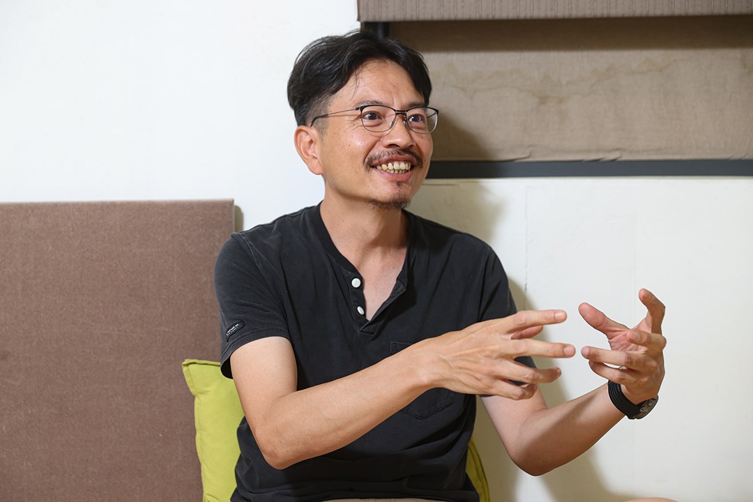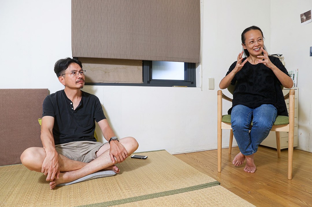邊輕鬆詢問大家是否要席地而坐、邊分享著《叫我野孩子2》主題的想像,導演謝欣志和搭檔十多年的夥伴陳芝安溫和招呼著。