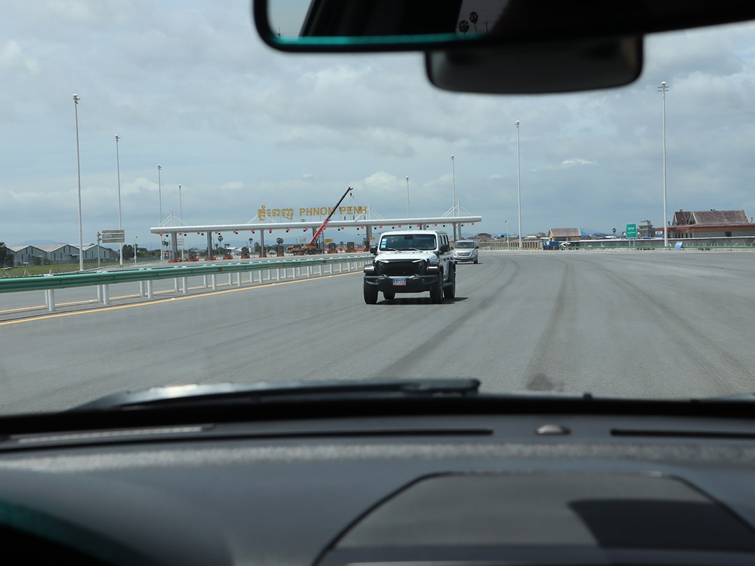 他們不是開玩笑,當司機載著我從金邊市區一路往金西高速公路的方向開去,抵達仍被鐵柵門圍著的交流道前,一名人員走了出來,司機接著出示已向「上頭」打過招呼的簡訊後,鐵柵欄緩緩被推開。