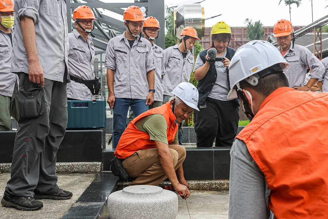 「就算這裡是有冷氣的工地,你就是要給我養成習慣。」邱上嘉笑眼瞇瞇,說請來上課的業師也比照辦理,曾有一名60幾歲的鑿花師傅被要求戴安全帽,心裡埋怨不已,但戴了以後倒「意外舒服」,「因為他發現原來安全帽可以調節長度,我想說天啊,之前從沒有人告訴你嗎?」