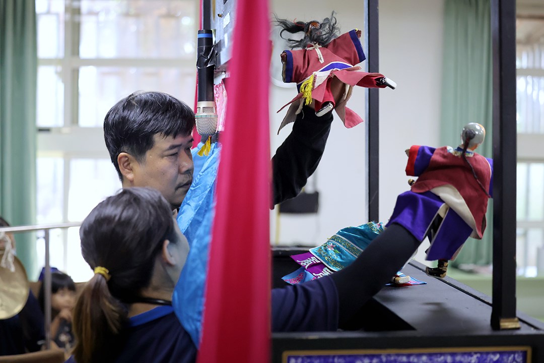 望著孩子們燦爛的笑容,黃武山想起自己也是在就讀國小時接觸布袋戲,跟隨當時「亦宛然」的陳錫煌、李傳燦兩位師父學習,進而加入「亦宛然掌中劇團」拜師學藝,「只因課堂上有點心可以吃」,沒想到一路學下來,竟與布袋戲結下不解之緣。