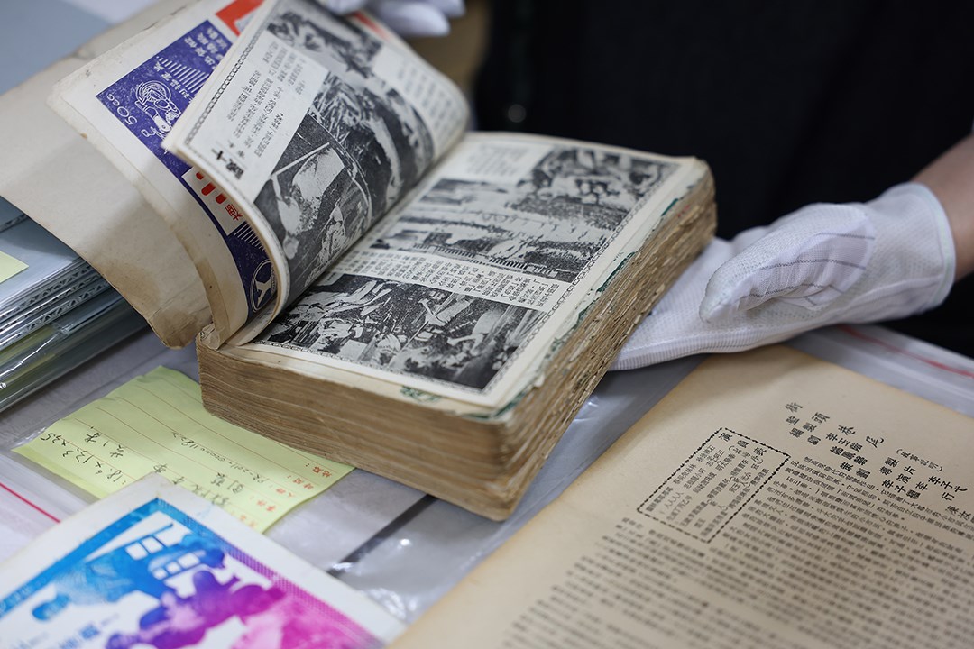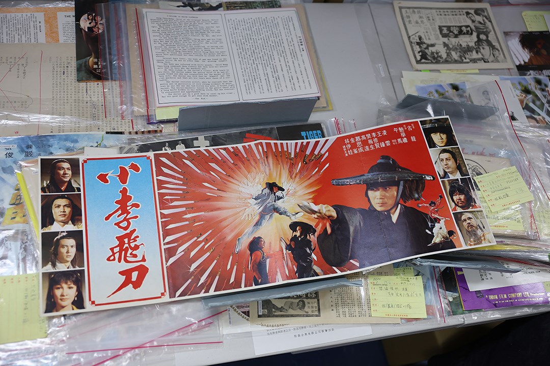 領著採訪團隊走進典藏庫房,上百件本事滿滿當當淹沒一整面長桌,這還只是一部分,魏綉芬隨手往桌旁紙箱一撈,每本資料夾裏頭都是寶藏,庫房涼颼颼的19度C,讓電影女星笑靨不失色,留住生猛有力的武打鏡頭,也為捐贈文物者凝結過往歲月點滴。