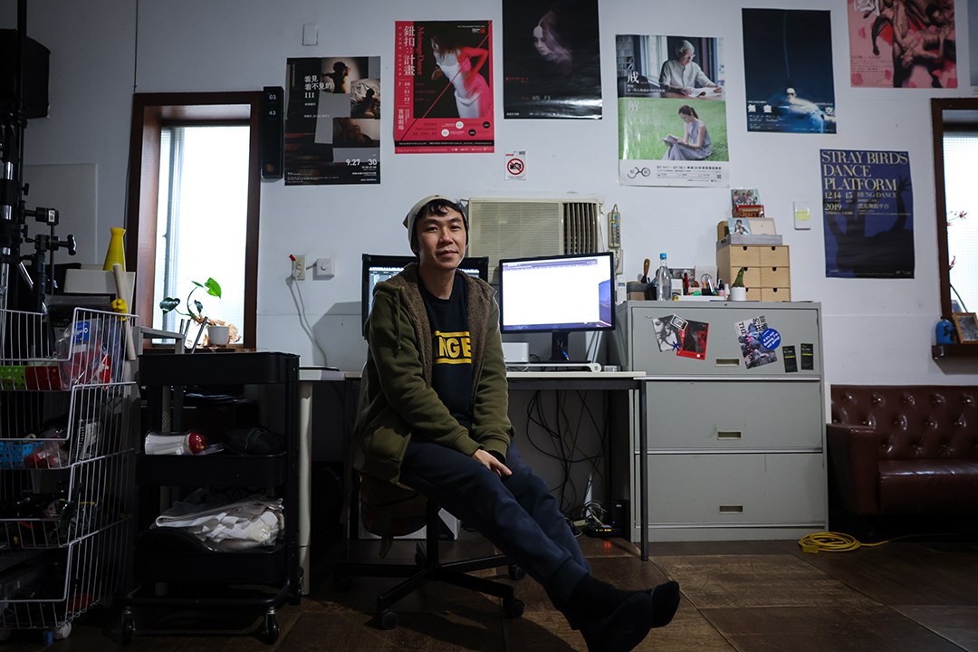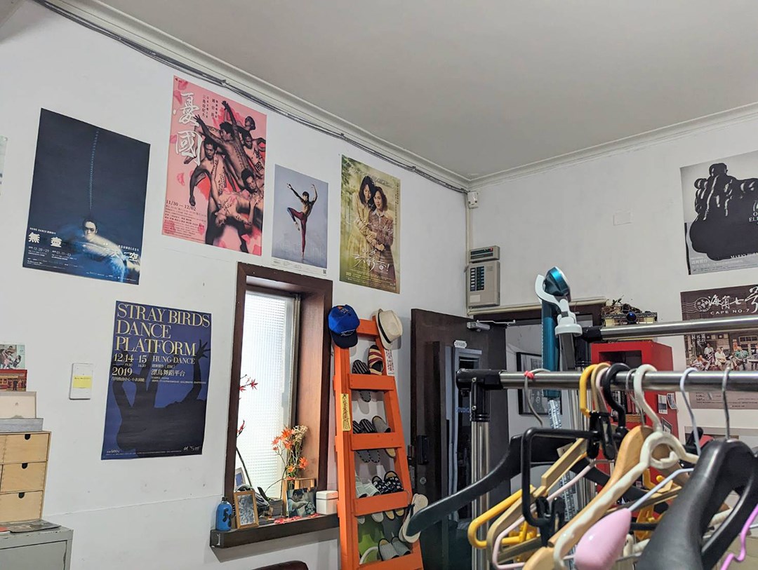 相比「豬屠口」一詞帶來的血腥感,貼滿舞台劇宣傳海報的工作室,顯得格外溫馨,牆上有孫翠鳳溫柔含笑、反串澎恰恰低頭默語,還有現代舞者們飽滿的肌肉線條,這些都出自林政億的鏡頭下。