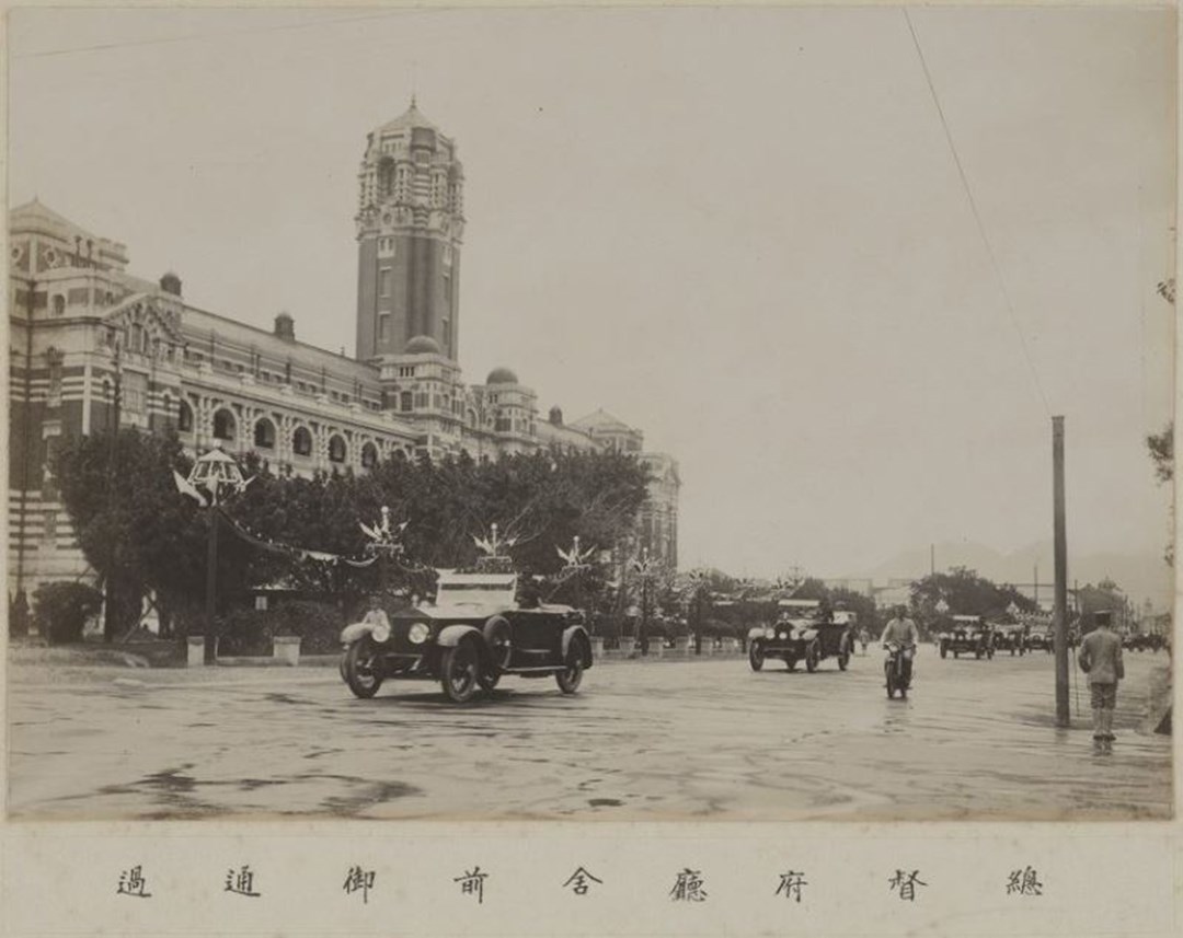 從影像回顧裕仁皇太子的足跡,第一天的正式行程就是參拜台灣神社,接著到總督府接受總督奉呈的奉迎文書與府治概要。總督府廳舍是現今的總統府,當時是台灣最高的建築,透過鏡頭也留下了裕仁皇太子車隊經過總督府氣派建築前地一幕。