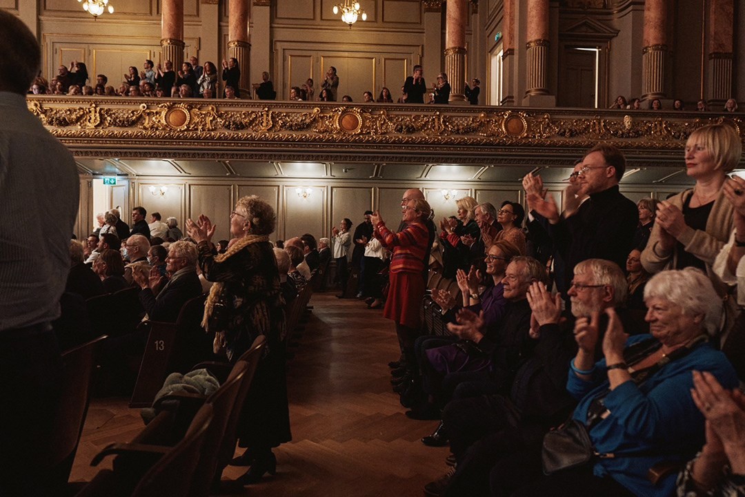 那是一張從觀眾席側面拍攝的照片,鏡頭掃到的十之八九都是西方面孔,而一半以上的觀眾站起來鼓掌,臉上洋溢著滿足的表情,就像在台灣國家音樂廳聽到柏林愛樂或是萊比錫布商大廈管弦樂團表現很好時,樂迷如我走出音樂廳那種不自主微笑的興奮。