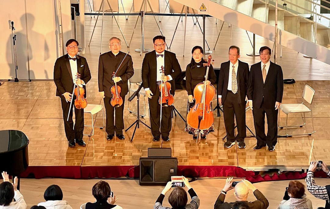 追悼會結束之後,東日本地震核災難遺產博物館內大廳,台北愛樂管弦樂團弦樂四重奏上場,一首首膾炙人口的歌曲隨著琴音流洩,親密又安慰人心,蘇顯達說,現場聆賞的人雖然不多,但因為有了音樂,讓整個博物館的空白宛如被填上色彩,這是來自台灣與福島的約定。
