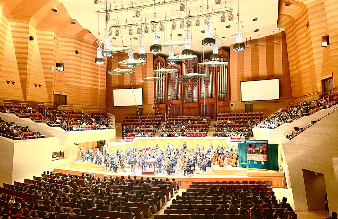 在三得利音樂廳演出,樂團帶去貝多芬的第五號交響曲《命運》,邀請日本小提琴家森下幸路演出日本作曲家外山雄三的「第2號小提琴協奏曲」之外,還大費周章演出委託作曲家鍾耀光創作的掌中交響作品「媽祖傳奇」,直接把彩樓帶上舞台,與華洲園布袋劇團共演,展現聽覺與視覺的交響。