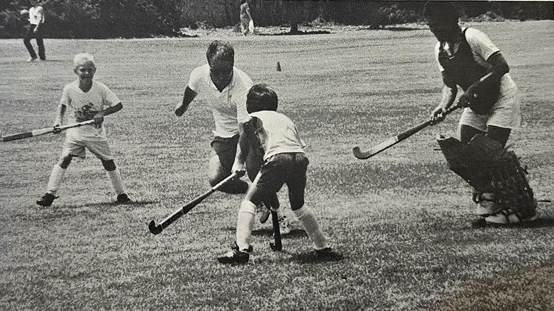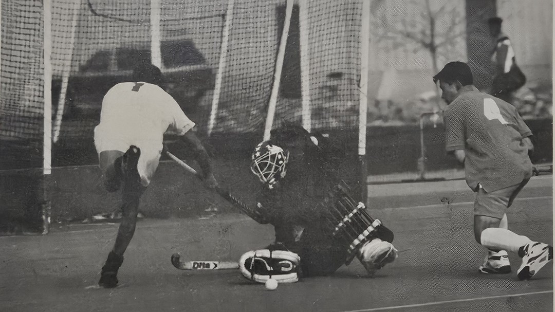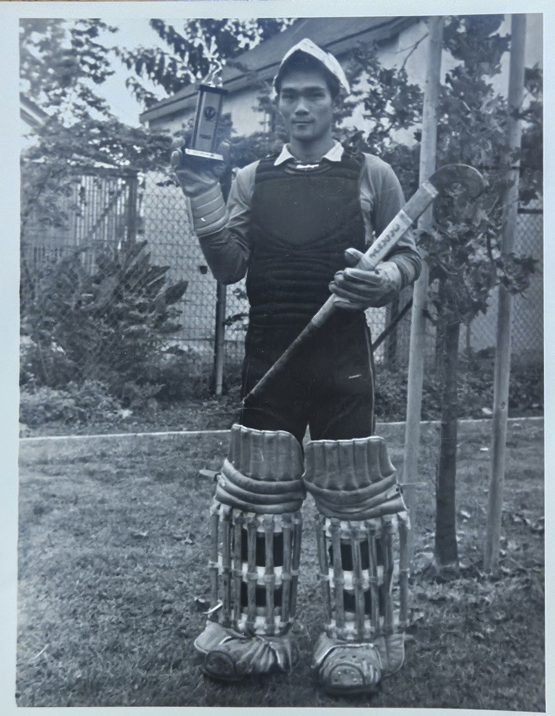 彰化市小學生跨海出征,奪冠爭光,這是呈現在新聞上的報導角度。但人在現場,在與受訪者的交談之中,我好像坐上時光機回到了40年前。呂哲文給我看的黑白照片裡,他身穿古早的曲棍球守門員護具。40多年前,他進入北體是籃球專長,也曾考慮加入棒球隊,後來為了上場空間而選擇較為冷門的曲棍球。