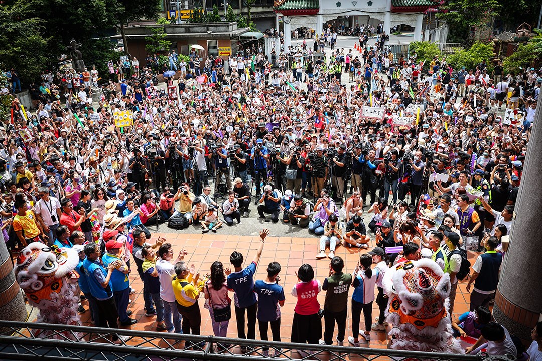 林郁婷在大批人潮與媒體包圍下進場,一度因擁擠人潮移動困難,在她登台接受眾人歡呼時我移動到高處,拍攝群眾熱情擁戴的盛況,只見她揮手向眾人致意,發表談話後與眾人合影,隨後現場主持人宣布公開行程結束,她從後台離開時不免略顯疲態,高人氣引來大眾關注,未來生活大概一舉一動都備受矚目。