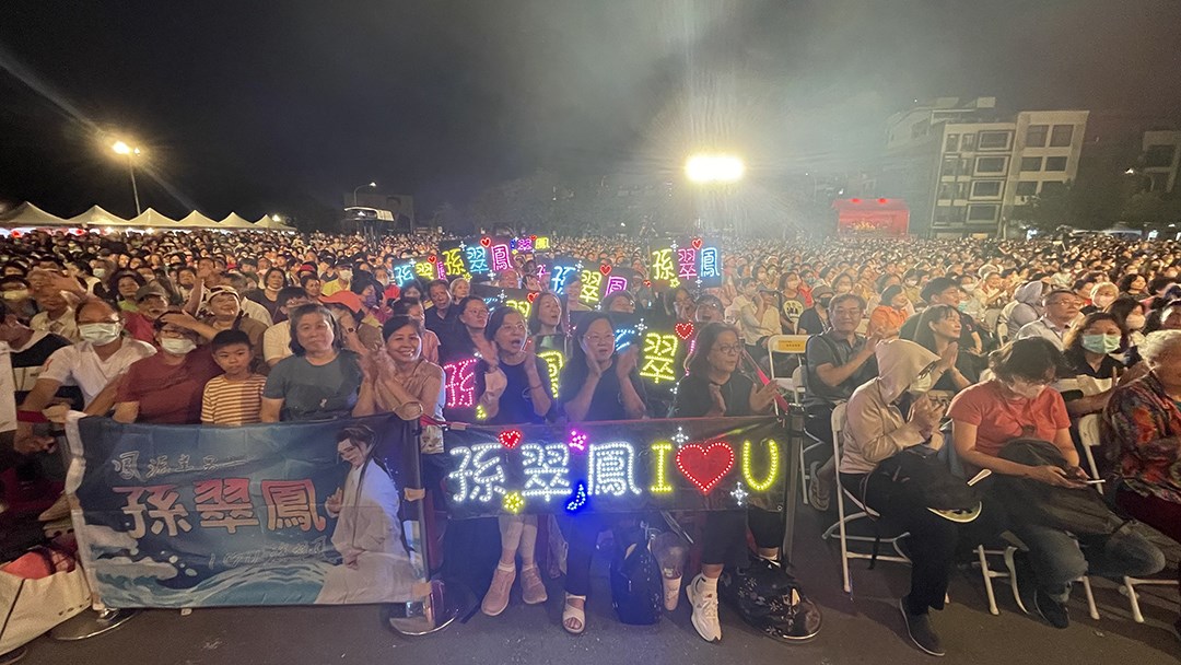 但戲迷們的用心驚喜,孫翠鳳都有感受到,尤其是跨界合作時,總會看到熟悉的面孔在台下力挺,高舉燈牌、尖叫聲不斷,「有時候我演完嗓子啞了,他們也跟著燒聲。」尤其有次參與舞台劇《叫我林彩香》時,還被製作人郎祖明笑虧:「我還以為是在明華園的場子呢!」