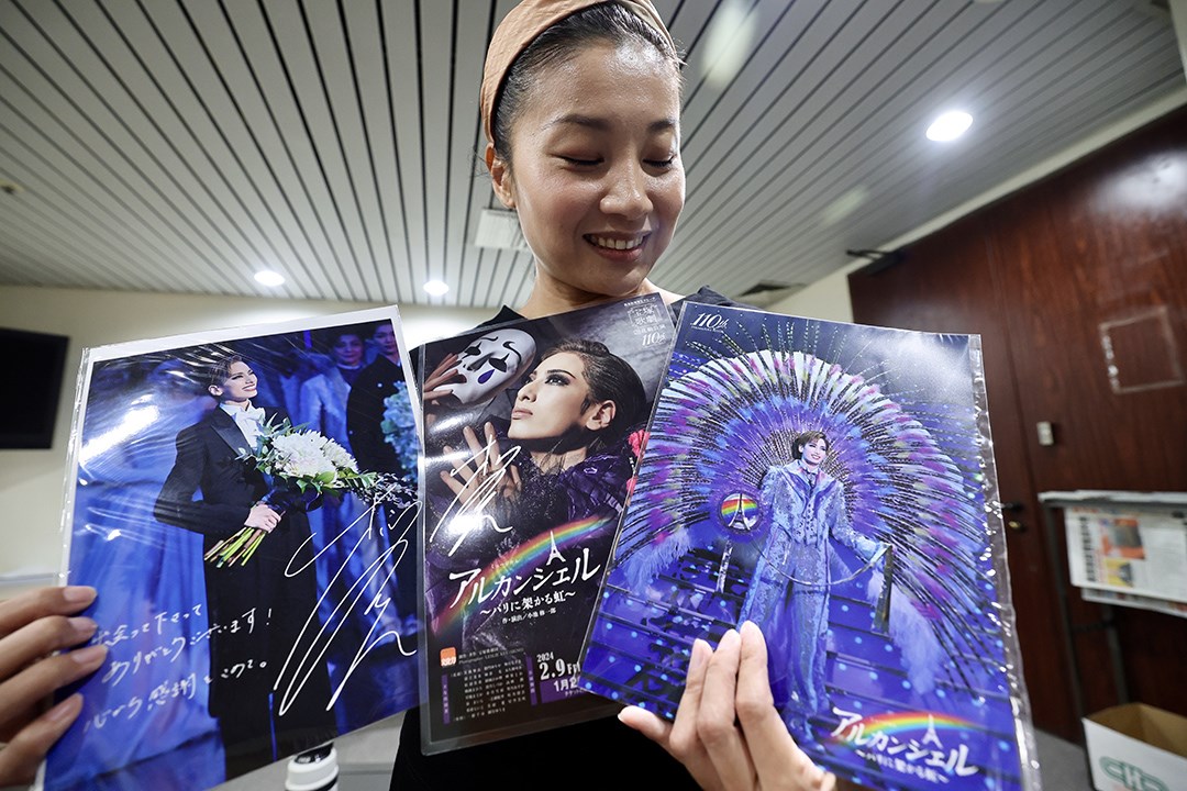 收藏十年的柚香光海報與場刊,依舊閃閃發亮,翁淑華擦乾淚水,回憶十年追星青春,因為有柚香光相伴,將會更有力量。