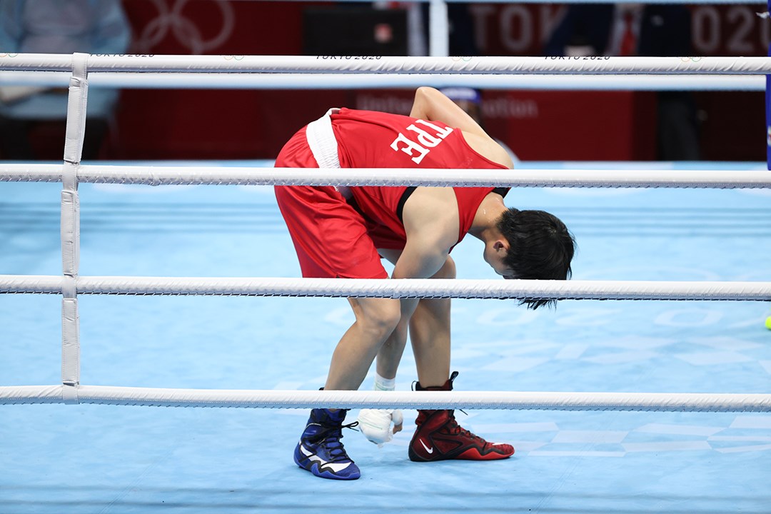 台灣女子拳擊好手林郁婷在東京奧運被寄予奪金厚望,沒想到首戰敗給菲律賓皮特西歐(Nesthy Petecio)遭淘汰,賽後他摸了拳擊賽場,留下遺憾。