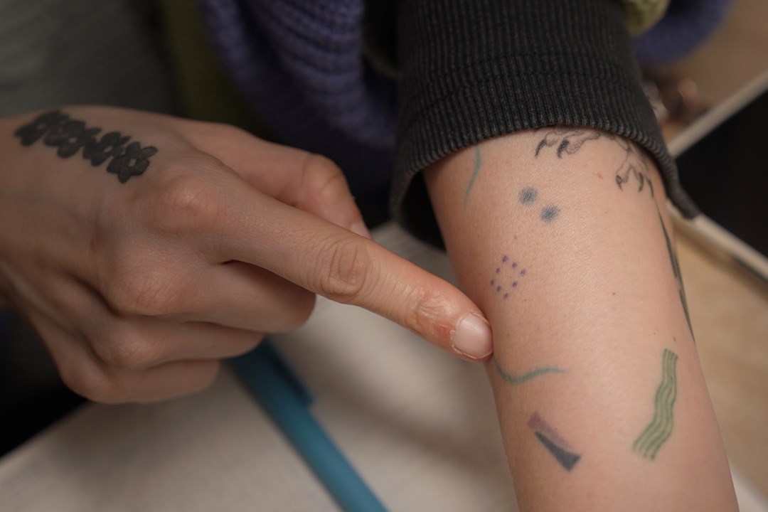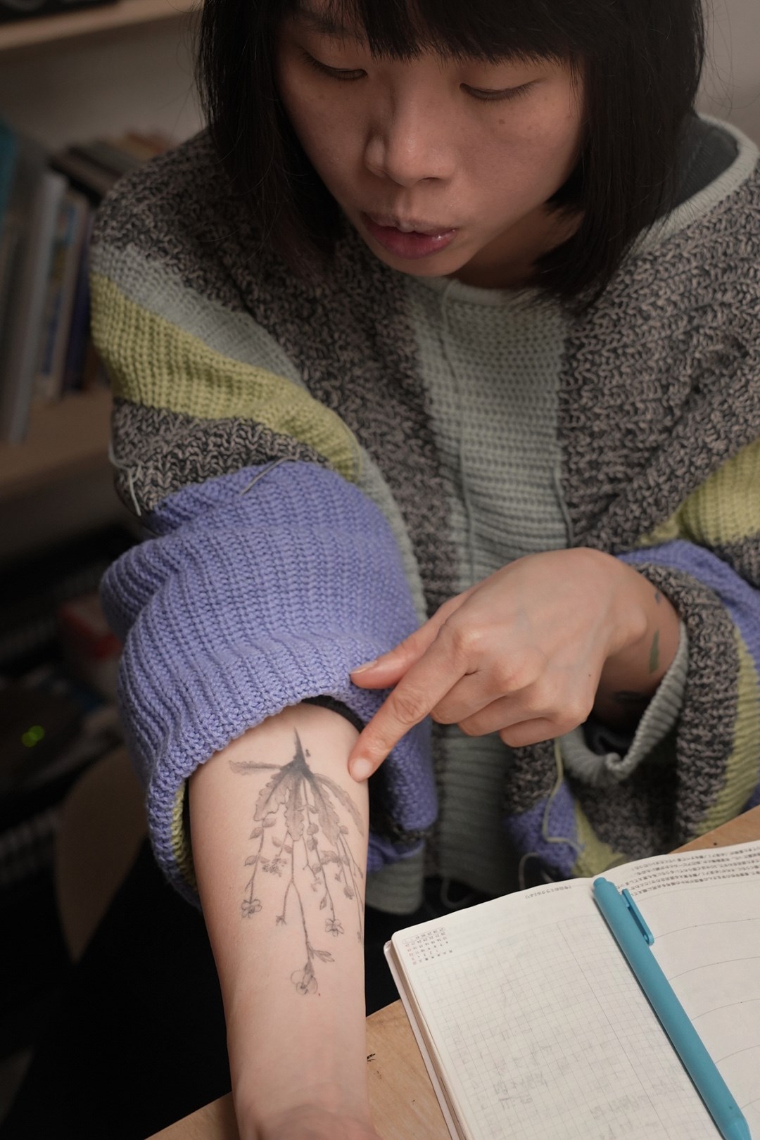 「這種因為刺青跟陌生人產生連結的狀態很有趣,也覺得,喔,真的跟以前不一樣了。」張玉音說,大學時不敢去刺青,主因還是對未來的不確定性,害怕別人怎麼看自己,也害怕家人不喜歡,因此就連刺第一個刺青時,她還是擔憂家人,但家人看見她選擇與家鄉有關的花草,便放下顧慮,明白是愛的展現。