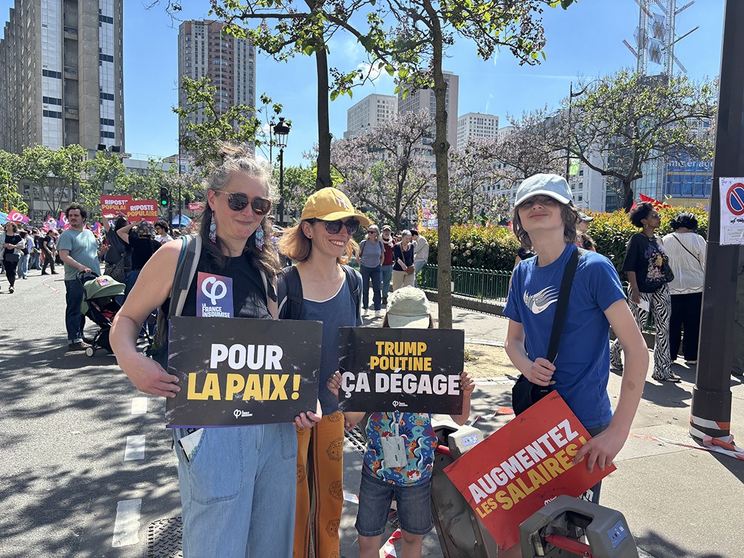 她總會帶著10歲的女兒參與示威、投票及各種組織會議,五一這天也不例外,「這是法國公民生活,跟著我她能直接學習」。