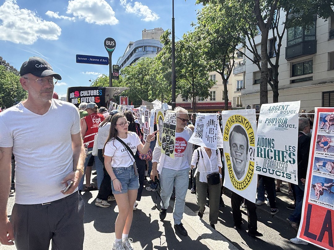上街不僅是「基本權利」,更是法國社會集體表達的政治傳統。隊伍後半段,民眾大多都會沈浸在如同嘉年華一般的氛圍中。人群跟著音樂載歌載舞、高呼口號,或跟攤販買小吃、啤酒,在陽光下席地而坐。