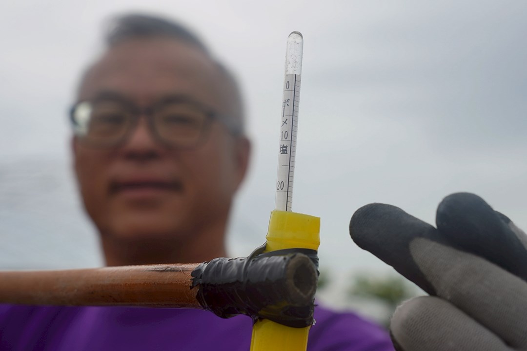 但當他意識到鹽工多已年過六旬,若不親自學習,技藝終將失傳,便下定決心成為「真正的鹽工」,畢竟筆記遠不如真人師傅。雖然曾因過鹵水過到想哭,如今曬鹽18年的他,已是全台少數的資深鹽工之一。