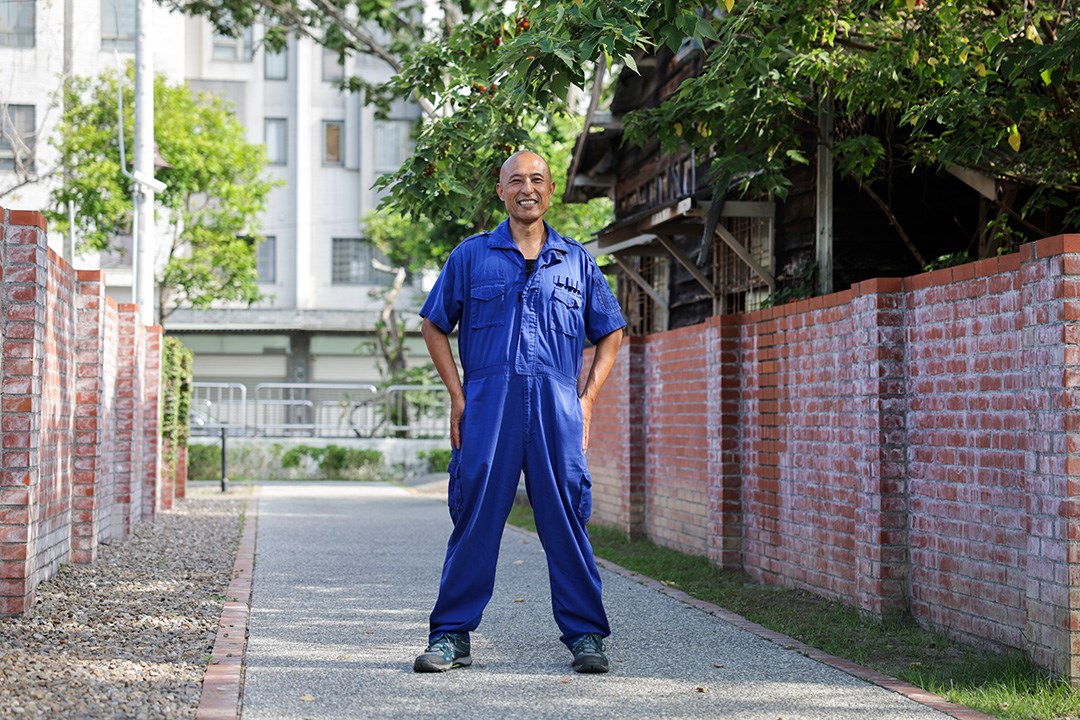 沿著圍牆一路右行,轉眼卻又換了種風景,一棟棟日式木造建築還有紅磚牆,夾雜些許綠意與豔陽藍天,倒還真像來到哪一處的文創園區,恍惚間,一顆光頭從赤紅鐵門前探出來,熱情探問。