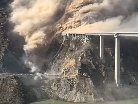 綜合陸媒新京報、極目新聞報導,四川省阿壩州馬爾康市紅旗特大橋11日發生垮塌事故,該橋位於馬爾康市雙江口水電站庫區,屬於國道317線的一部分。岸橋頭於下午4時許疑因山泥傾瀉坍塌,連接山體的橋墩與橋面斷裂,落入下方的足木足河中,揚起滾滾煙塵,只剩下連接左岸的橋體矗立水中。