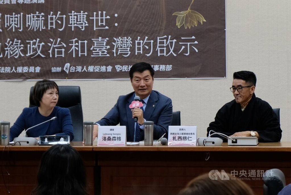 洛桑森格(Lobsang Sangay)2日晚上在立法院紅樓進行演講,題目為「達賴喇嘛的轉世:對地緣政治和臺灣的啟示」。立法院人權委員會會長、民進黨立委范雲,台灣國會西藏連線會長、民進黨立委吳沛憶,台灣大學政治系副教授陶儀芬及西藏台灣人權連線秘書長札西慈仁出席,並與洛桑森格對談。