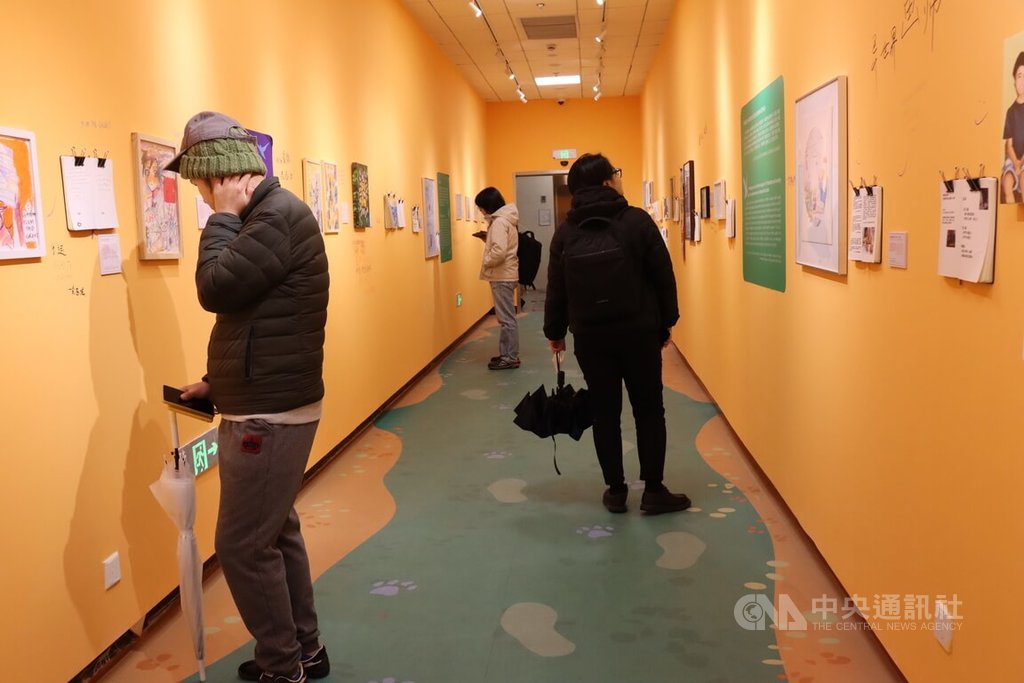 同時,展覽也提醒親友「不需要做一個完美的照護者」,因為有53.8%的照護者有中度以上的憂鬱症狀,應該要有自己的社會支持網路,「不要讓照護者成為你唯一的身分標籤」。現場一些民眾聚精會神觀賞相關的作品和標示。