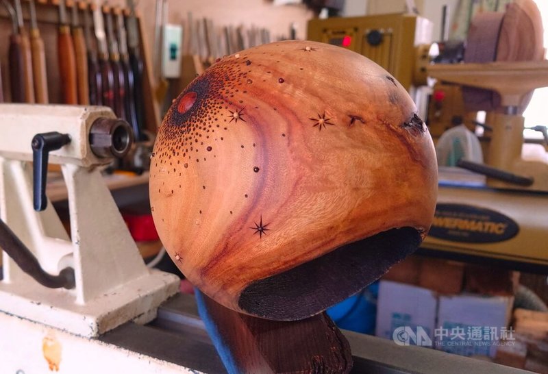 (中央社記者蔡智明嘉義縣14日電)木工車床藝術家楊佩曦去年底將工作室從北部遷移嘉義,在靜僻鄉下發揮天馬行空想像,透過木工車床將邊角料、拆屋舊料變成華麗藝品,並投稿國外知名車床期刊,作品獲國內外收藏家珍藏。