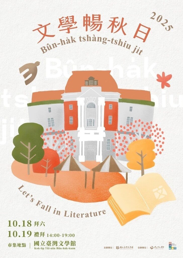 台文館今天指出,今年台文館慶「文學暢秋日Bûn-ha̍k tshàng-tshiu ji̍t市集」,以「文學是對話」為核心理念,結合母語元素,串聯獨立書店、藝術創作、跨國文化、特色飲食、音樂表演等。