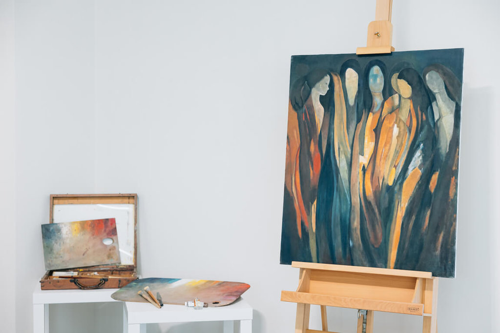 捐贈儀式也展出林克恭部分作品,如「女人群像」上半部勾勒明確人體臉型,與下半部精湛銜接的色塊形成對比,開創平面內的虛構抽象空間;「颱風眼」則融合自然意象,將颱風眼具象化,結合現實及象徵寓意。