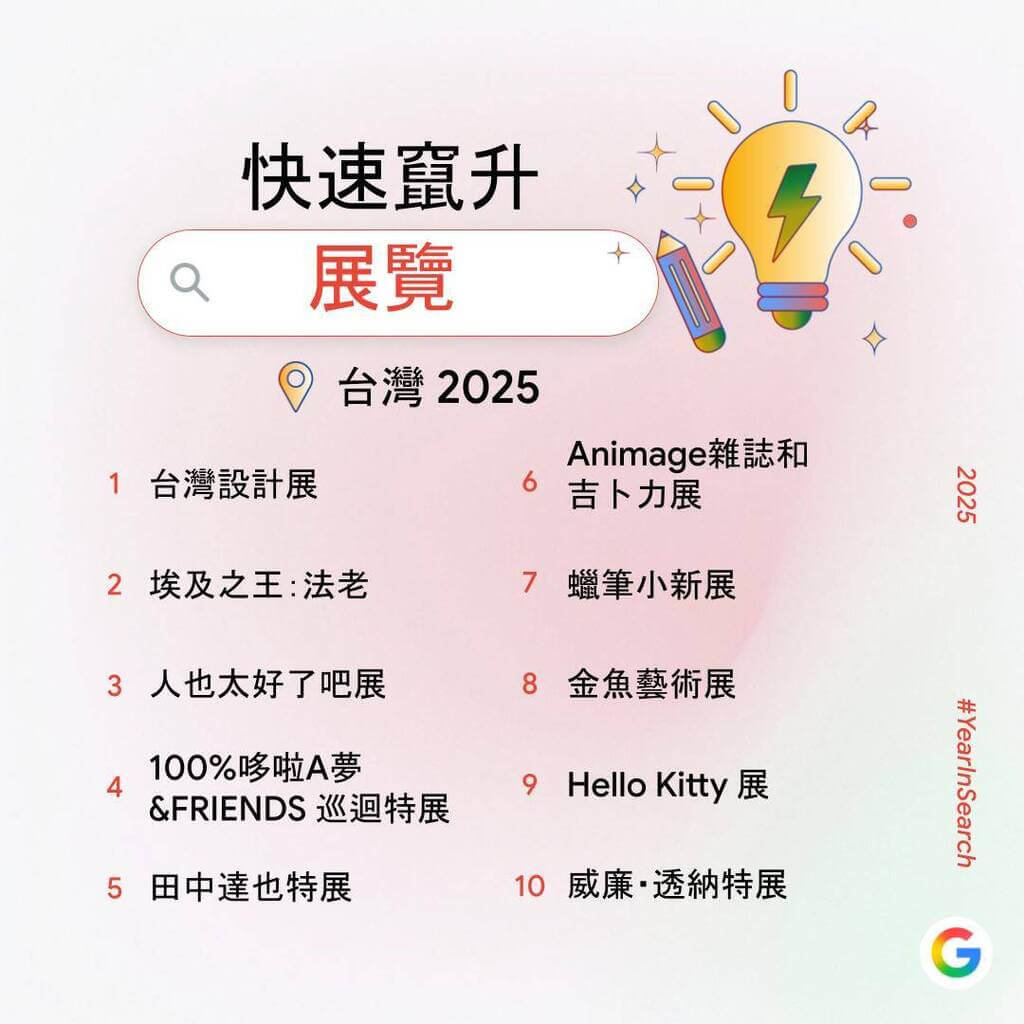 - Google年度會展搜尋排行 台灣設計展、法老展入列2025/12/04 19:07