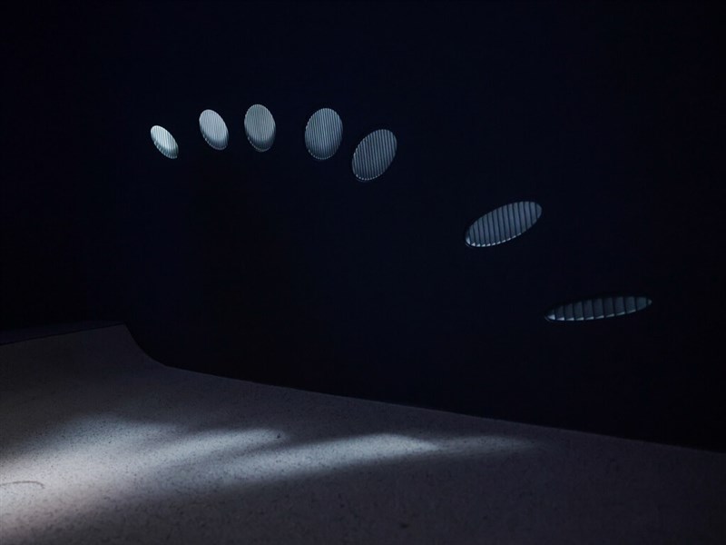 以此次獲獎作品「軌道」為例,謝榕蔚計算北美館地理位置與座標,讓展期間不同時刻的太陽光能藉由多個月形洞口設計,在展間上演一場光的接力賽。