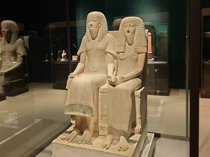 她說,第2件想特別提到的則是「未來的國王霍朗赫布及妻子的雕像」,這件文物在1839年由大英博物館購入時,並沒有任何資料,不知道雕像人物身分及在哪裡出土,是後來透過持續考古發現才有新的認識,釐清相關脈絡,就像經常有謎題需要破解一般。