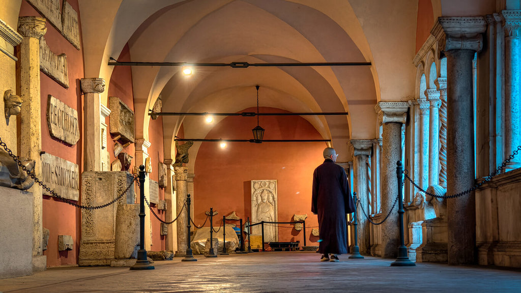 宗博館今天發布新聞稿表示,「以愛與和平之名—僧人眼中的梵蒂岡」攝影展作品由走進梵蒂岡、義大利羅馬與阿西西等地的靈鷲山僧侶拍攝,在不同文化場域間,以修行者的心觀看人、空間與光影。