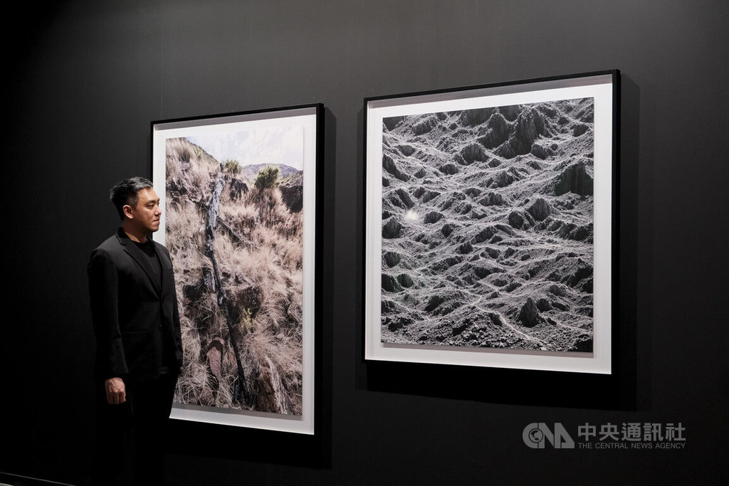 攝影作品Still Light,聚焦山火過後往下生長的焦木,呈現生命質地的改變;Emerging Landscape涵蓋1件平面影像與1件投影裝置,源自對小鎮礦坑歷史遺跡的探索,透過AI演算生成影像,形塑如礦坑與山火般的地景,投影在焦木上使其獲得藝術生命。