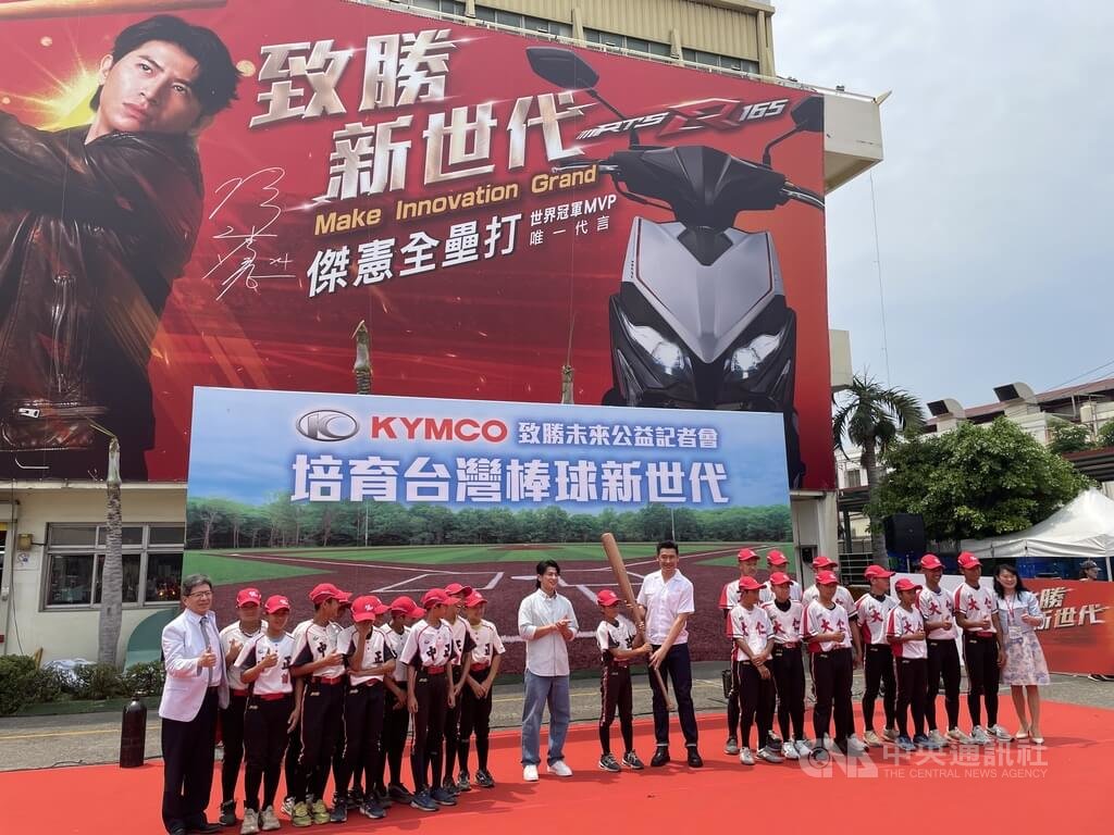 光陽今天舉行培育棒球新世代公益贊助儀式,柯勝峯代表捐出新台幣100萬元公益義賣總額,捐贈給高雄市中正國小以及陳傑憲母校大仁國中棒球隊,作為培育高雄基層棒球所用。