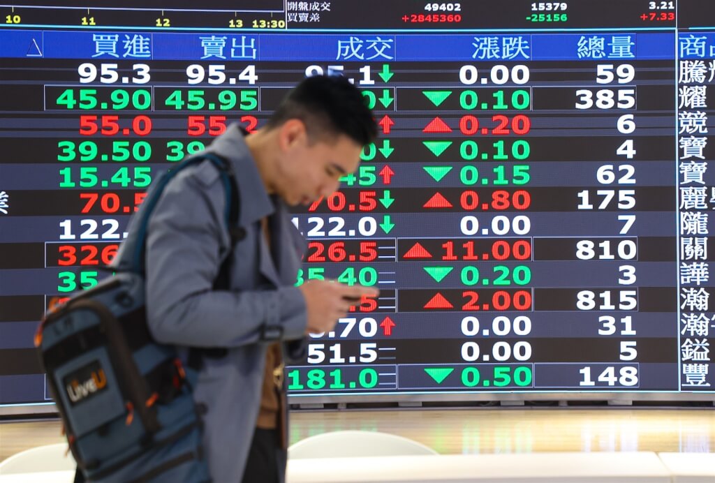 3大權值股漲跌互見,台積電最多下跌25元至1125元,鴻海最多漲1.5元至186元,聯發科最多漲10元至1350元。