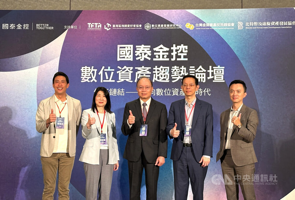 國泰金控今天舉行數位資產趨勢論壇,包括金管會金融市場發展及創新處處長胡則華、副處長施宜君、國泰金資訊長吳建興以及多位產官學專家參與。