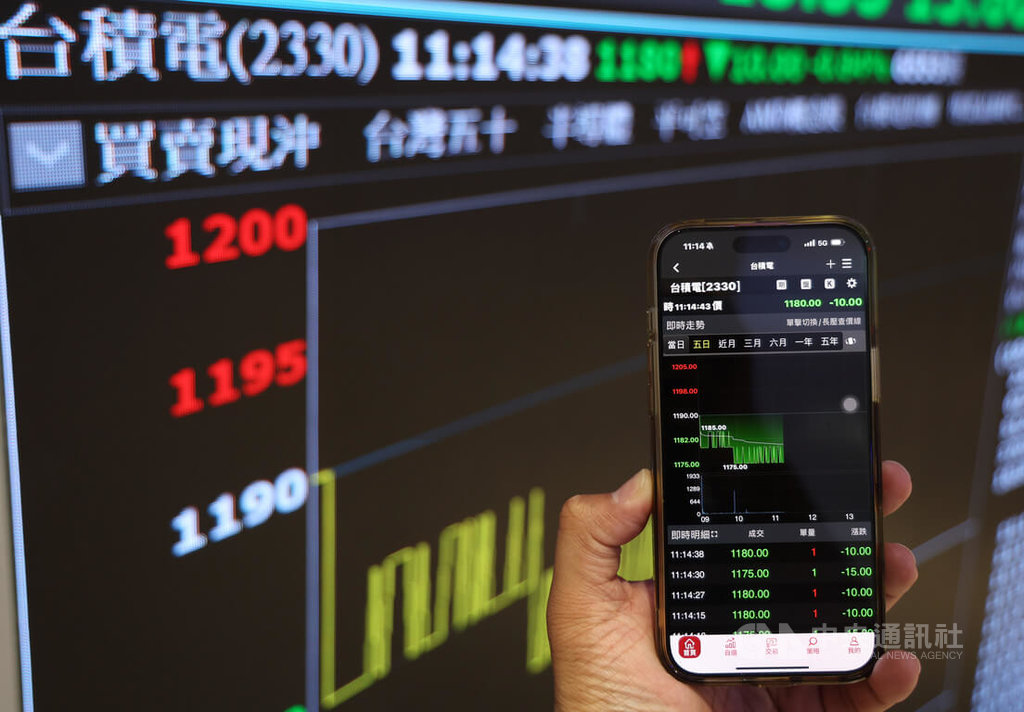 輝達財報行情失靈,輝達晶片代工廠台積電美國存託憑證(ADR)盤後下跌逾1%,台積電今天股價隨著走弱,收在1160元,下跌30元,市值滑落至30.08兆元,影響大盤約241點。