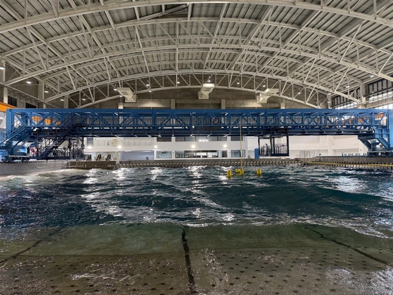 (中央社記者曾智怡高雄4日電)「海洋科技產業創新專區」離岸工程中心近日正式啟用,擁有國內首座深水試驗水池,可模擬真實海域風、波、流的極端環境,包含造出俗稱「瘋狗浪」的巨浪,提供國內浮式風電、波浪能及水下電纜等試驗。
