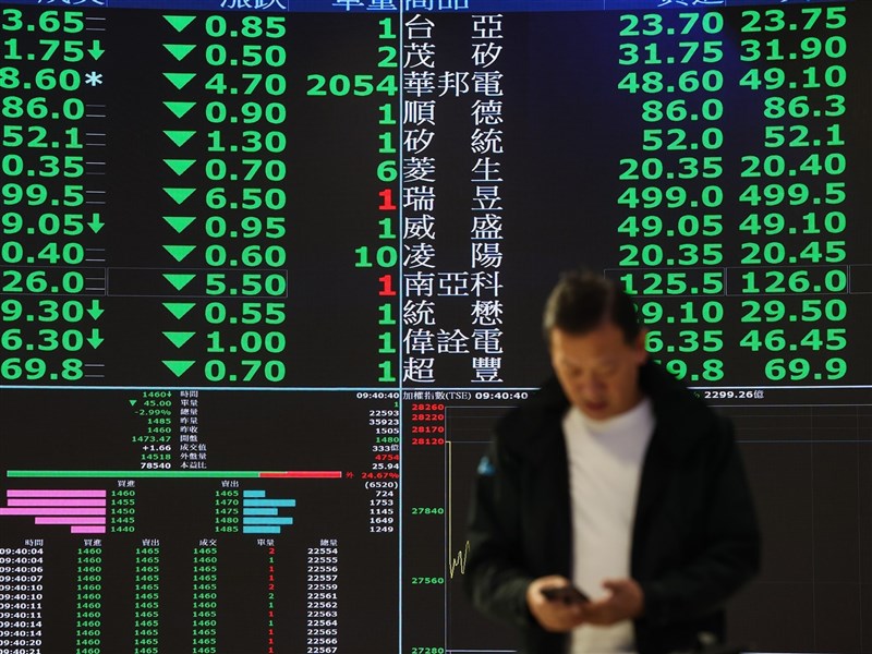 (中央社記者江明晏台北5日電)市場擔憂AI熱潮泡沫化,美股、亞股齊挫,台股開低震盪,台積電拉回修正,指數一度下跌743點,下探27373點;盤中鴻海、聯發科翻紅,指數跌點收斂,終場下跌399.5點,收在27717.06點,守住月線27653點。