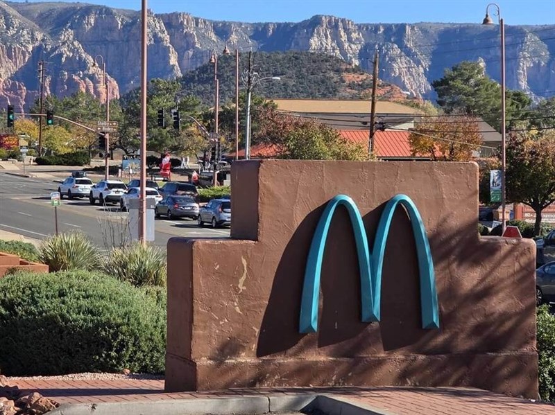塞多納以壯麗的紅岩景觀聞名,當地政府為維護自然地貌,自1990年代起即要求建築外觀不得破壞視覺調性。1993年在此開幕的麥當勞因而將經典黃色M字招牌改為綠松石藍(Turquoise blue),搭配紅土色建築,使招牌在群山背景中更顯和諧,也意外成為網紅熱愛打卡的全球唯一藍色麥當勞。